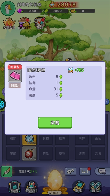 4、我们还可以提升鹅蛋的等级,从而提高装备的稀有度。