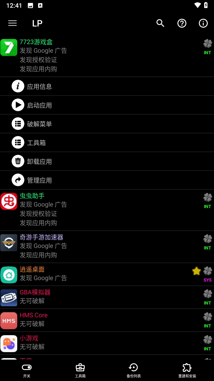 幸运是一款软件,想改软件或者的话,这个工具能派上用场,不过得有root权限才行。能支持xposed,能当模块用,自己单独用也没问题,能帮着去掉广告,像Tank Riders、Reckless Racing HD、Ground Effect HD、Spirit、Aftermatch这些都能试试,但没法保证每次都能修改成功,所以才叫幸运。用的时候选中应用,长按一下就能弹出菜单,操作挺简单的。