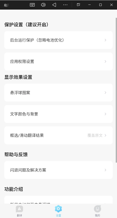 保护设置方面,为避免系统自动清理后台造成悬浮球无法正常工作,我们强烈建议开启“后台运行保护”功能。