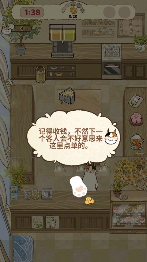 3、餐厅自由装扮:允许玩家自定义装饰、餐具、家具等各类元素,打造专属的喵系料理空间,以此提升餐厅整体氛围,增加顾客的满意度。