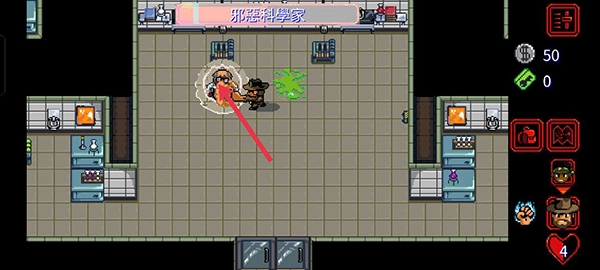4、激光消失后手撕博士,它变红后依旧按这个方法打(注意走位),第一关存在隐藏门。