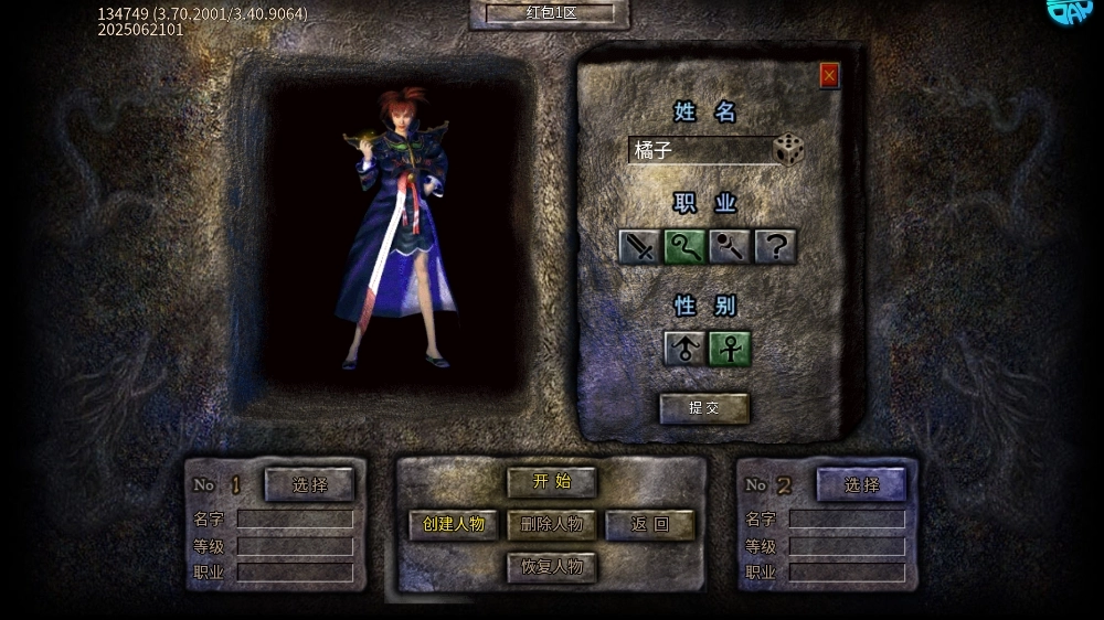 2、创建人物角色,自定义姓名,职业等基础信息;