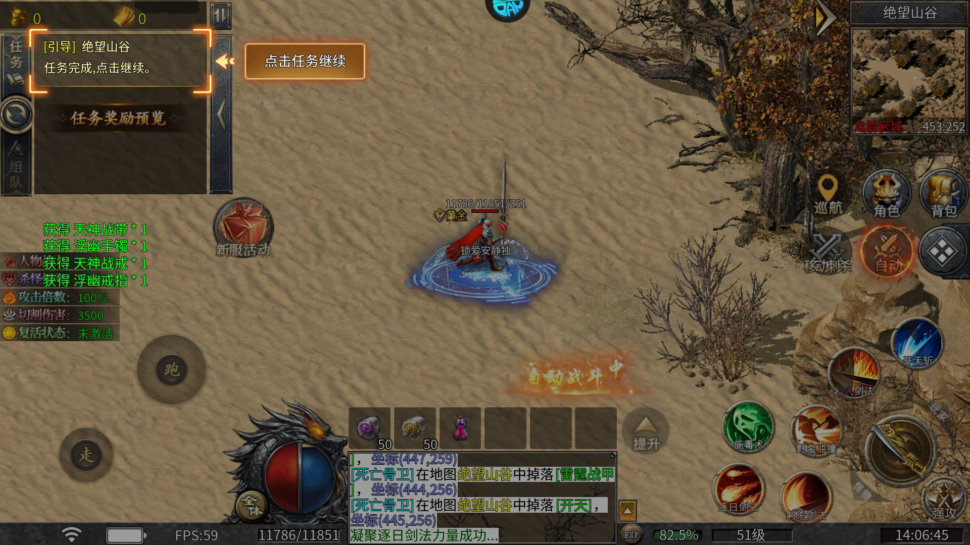 6、完成副本主线任务,角色转生达到10转后,可前往第三大陆断魂岭,该区域难度略有提升,需要耐心完成引导任务。