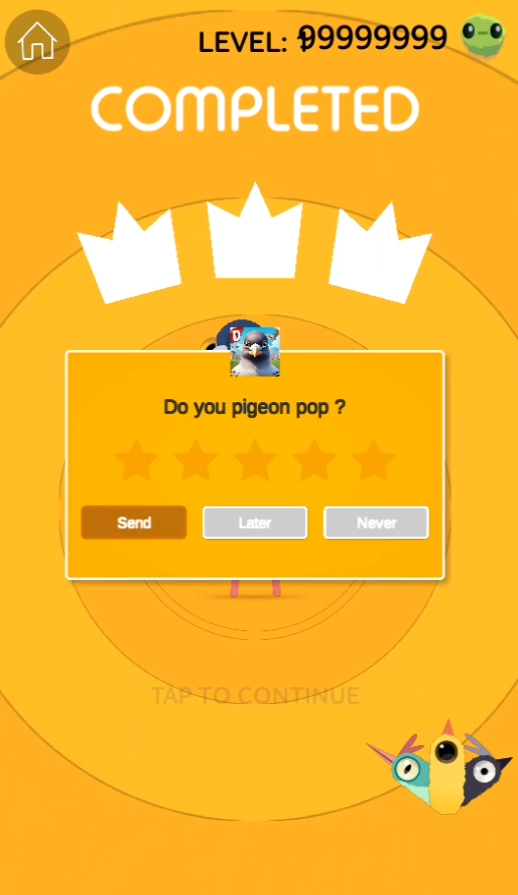 3、完成LEVEL1后,查看【COMPLETED】界面,点击继续按钮,努力收集更多道具以获得皇冠,提高关卡评价,从而解锁新的挑战。