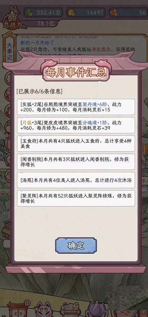 二、在完成不同事件后,狐狸会得到对应的属性提升,像灵力、心境、机缘这类。玩家能够依据每只狐狸的培养方向,有针对性地参与事件,让它们实现差异化成长。