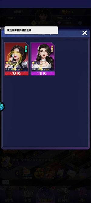 7、选择技能数值较高的主播参与直播,开启首次直播经营活动。