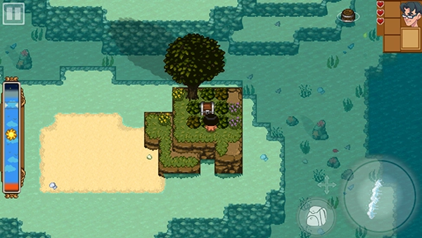 3、我们走到宝箱所在的位置,看到它被草丛包围着,当下得做一把工具来清除这些草丛。