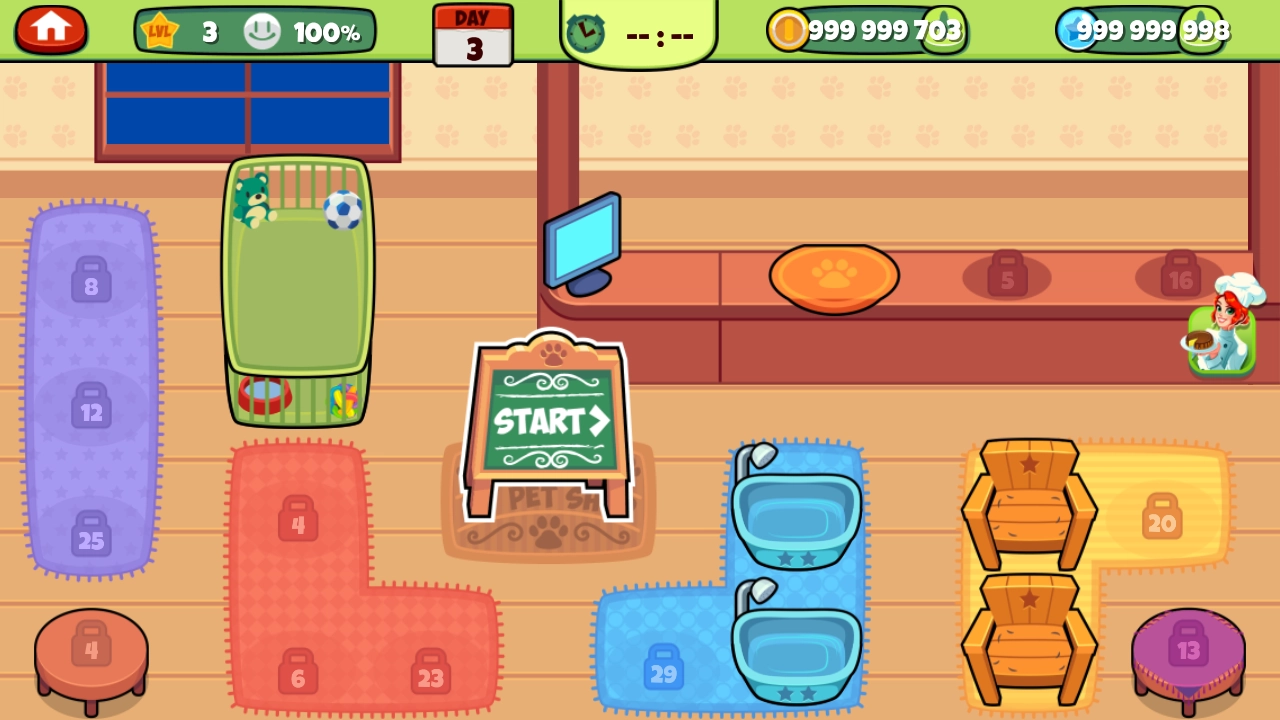 通过完成服务积累经验,逐步升级美容工具与医疗设备。解锁新功能区,扩大店铺规模,打造属于你的五星级宠物服务中心。