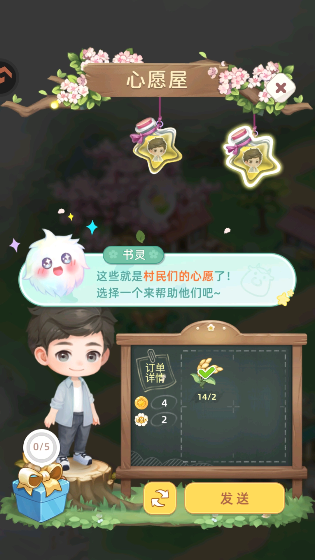 7、搭建心愿小屋,在这里能够协助村民达成心愿,从而获取能量石。