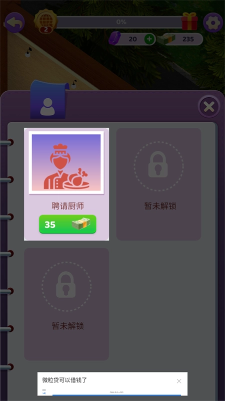9、玩家可以雇佣一位厨师来负责菜品制作,自己则专注于顾客服务工作,这样能提升运营效率、减少服务时间。