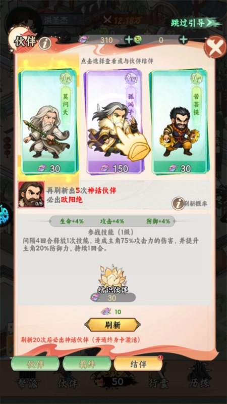 6、选择自己中意的伙伴,然后点击结识伙伴。