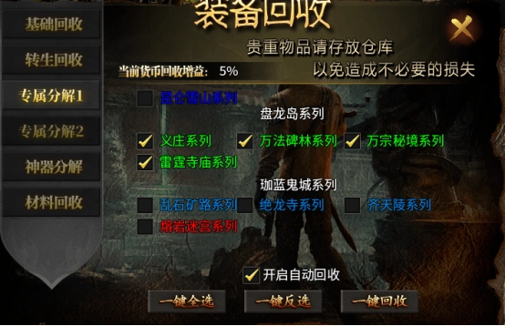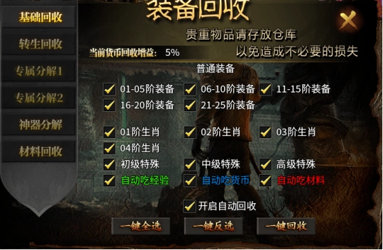 回收前请仔细核对装备信息,避免误回收仍有使用价值的装备。若开启自动回收功能,务必提前设置好精准的回收条件,防止将有价值的装备误回收。