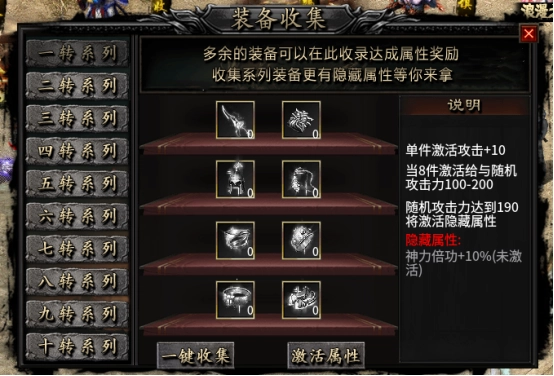 第二页前期不要勾选土城的装备收集选项,等把1-2转的装备回收完成后再勾选。