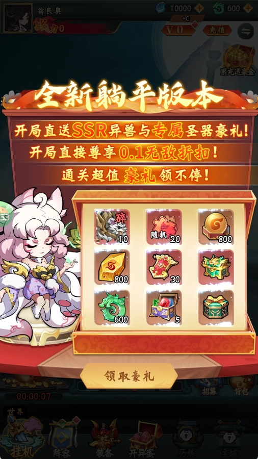 2、开局送SSR异兽与专属圣器修为仙玉,资源拉满
