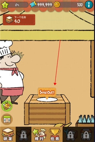 在训练选项里,核心功能是提升厨师的技能,具体分为简单训练与难度训练两种模式,玩家通过点击经验星星来增强厨师能力,能力提升后能助力产品制作效率和销量增长;而任务选项中则包含一系列待完成的任务,完成这些任务可获取对应奖励,用于三明治摊子的发展运营。