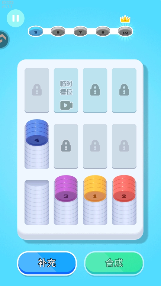 3、当牌列出现空缺或者可操作的牌数量不足时,点击补充按钮来获取新牌,以此确保有足够的牌能够进行归类和合成操作。