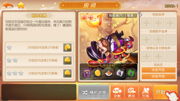 8、接着选择要携带的技能、武器、宠物,点击开始;