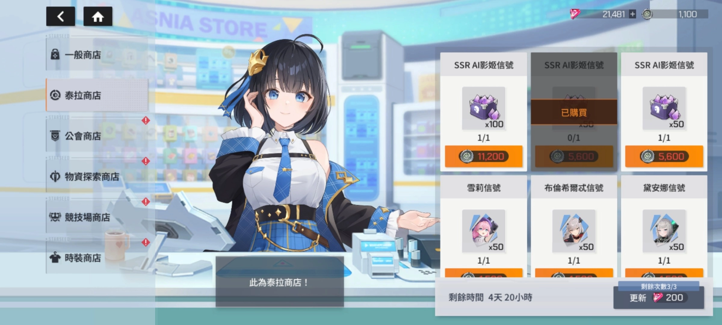 我一直只买第二个紫色碎片,要是刷出套装变更工具,就优先购买这个。因为它每个月都会刷新,所以剩下的资源就随便买些狗粮碎片就好。