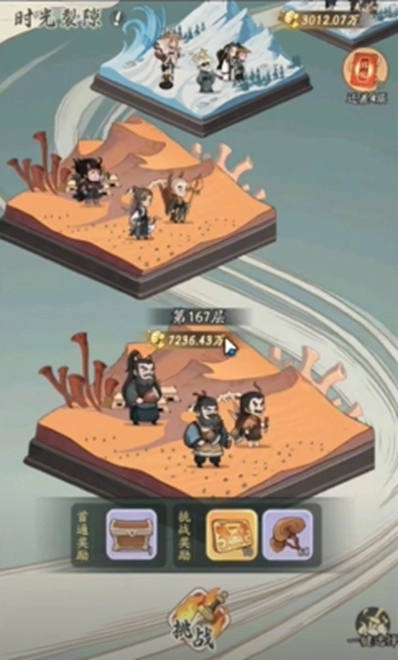 时光裂隙是获取宝箱的重要途径之一。玩家需组建强力队伍挑战不同难度的时空关卡,通关成功后即可获得对应宝箱奖励。宝箱内可能包含名士碎片、异兽碎片等珍贵道具,助力玩家快速提升战力。