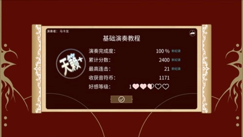 5、演奏结束后系统会为你的表现打分,要是成绩出色的话,还能提升好感度呢