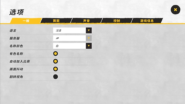 2、在选项设置中,可对语言、服务器、画面、声音、控制及信息等参数进行调整。