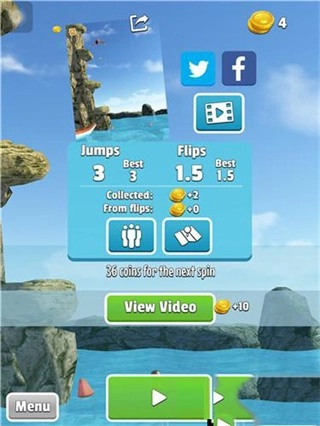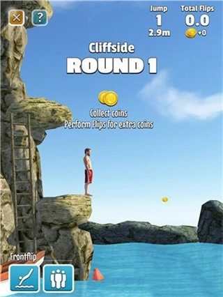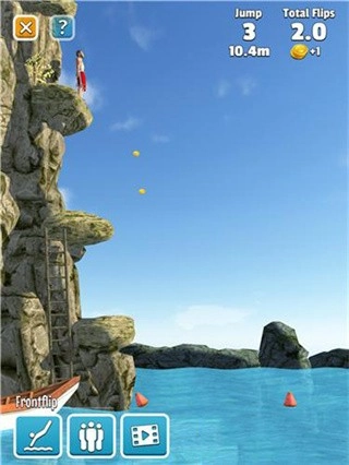 在这款游戏里,玩家只需操控角色离开跳台,接着点击屏幕就能让角色以不同姿势入水。不过要是想获得高分,就得让角色的头部或脚部垂直入水才行。