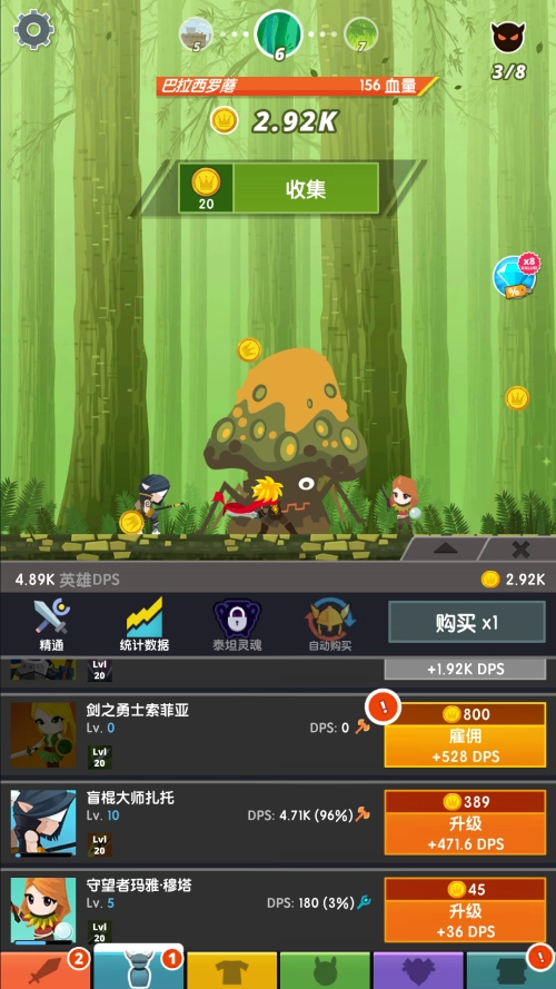 5、偶尔上去给技能和英雄升升级就行,毕竟这个爬楼机制和你的dps以及大楼层有关,不过这样至少占用的时间更少了,我们玩放置类游戏的初衷不就是如此吗?