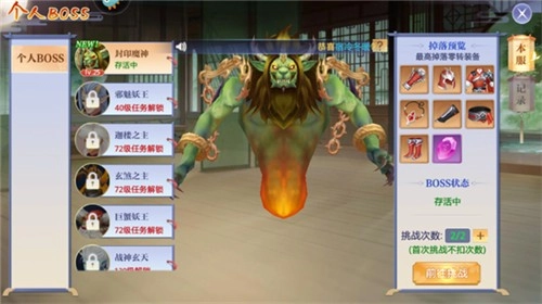 7、完成升级后,妖灵、宠物等系统以及混沌幻境、狩猎场BOSS等玩法便会解锁。