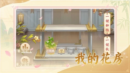 收集到一定量的花露后,仙子们就能在【我的花房】里种植花卉,还能给【古木神树】浇水了。