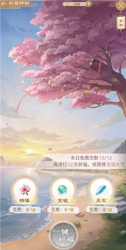 在【祈福神树】处能够开展祈福活动,每日设有固定的祈福次数,当次数用完后,还可以选择消耗元宝来继续祈福。通过祈福能够获取丰富的资源。