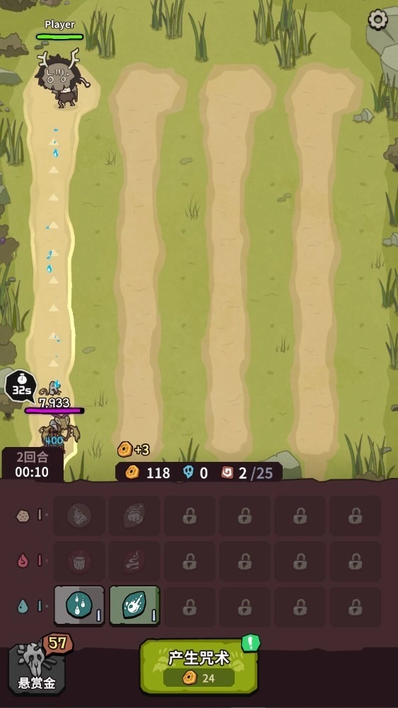 3、三个相同的咒术能够合体升级,转化为更强大的咒术,从而提升战斗能力;