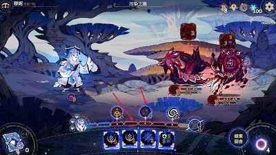 2、随后我们就能正式开启战斗,这里面蓝色骰子的作用是为自身治疗,或是对敌人造成伤害。