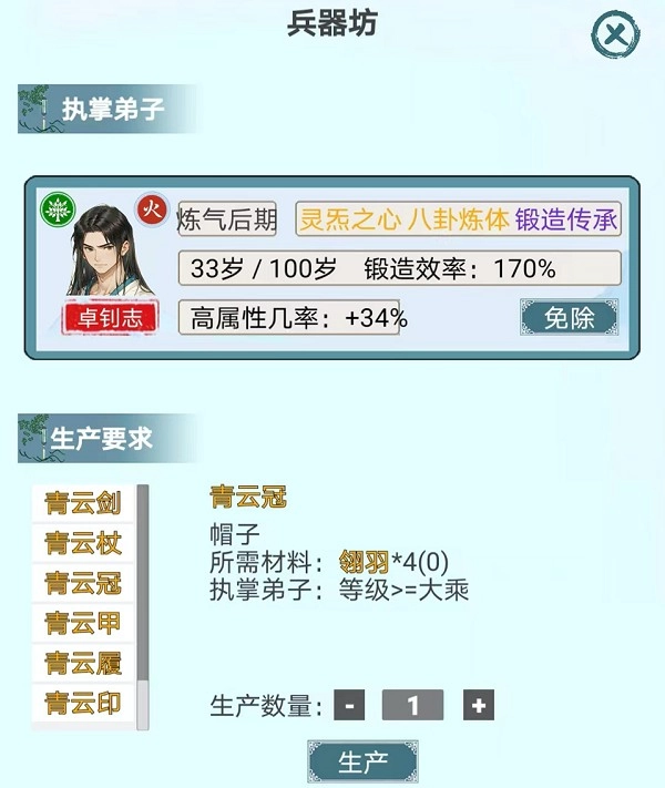 弟子的修行等级从低到高依次划分为炼气、筑基、结丹、化神、大乘,最终可达飞升之境。除飞升外,每个等级内部又细分为前期、中期、后期与圆满四个阶段。飞升是修仙之路的终极境界,一旦达成便可拥有无尽寿命。