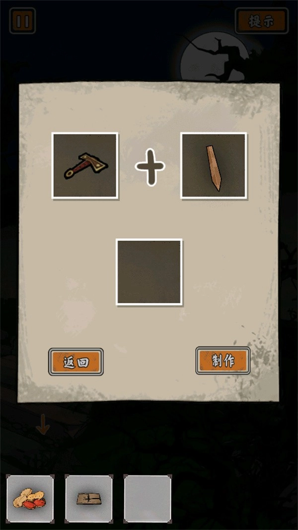 9、之后玩家进入符咒区域,用夹子把木炭放进火盆,用火柴点燃(或直接触碰点燃),接着放入黑矿石,再用夹子取出朱砂石,随后回到柜子处将朱砂石捣碎,得到朱砂粉。