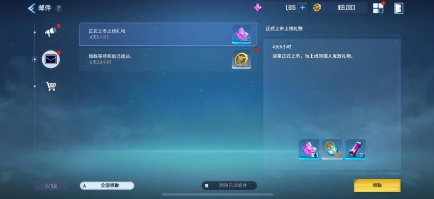 3、另外新手还能领取20连抽,通过首次签到和邮件即可获得。