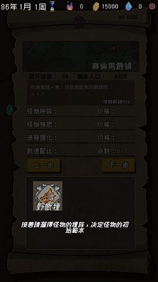 5、接下来需要协助怪物选定其出身种族,以及初始攻击力等属性。