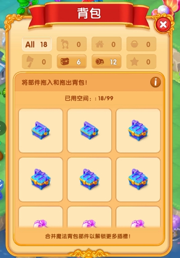 3、砍伐障碍物和开启宝箱时,有一定几率掉落魔法背包的合成部件。