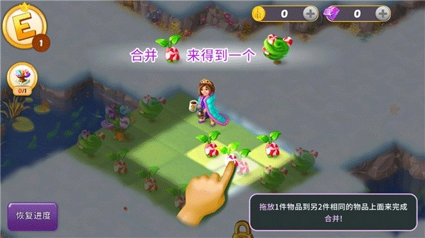 1、进入后,若看到相同的图案,点击并拖放进行合成;3个相同的图案会在此处完成合成、合并与消除操作。