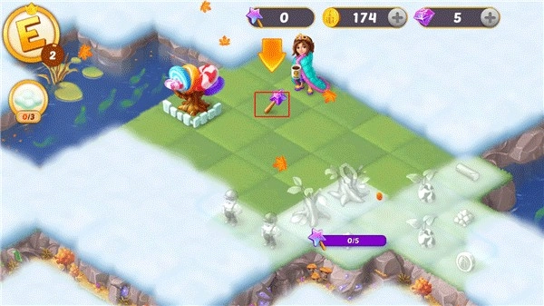 6、使用魔法棒驱散迷雾以扩大版图,之后就能看到更多可放置的物品,地图也会随之持续扩展。