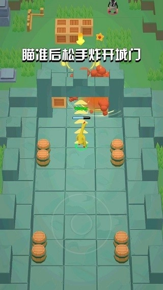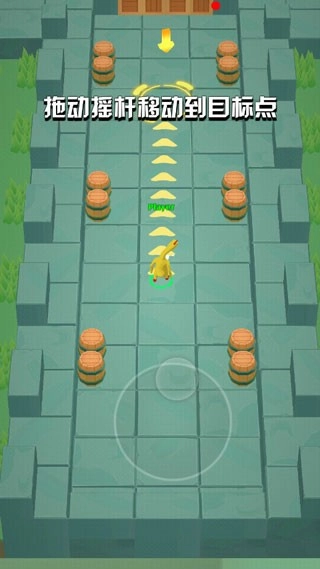 3、操作方式十分简单,开始后,用手指滑动屏幕就能移动角色,与此同时鸡会举起手中的鸡蛋(炸弹),角色下方会显示移动方向,松开手指后鸡蛋就会被扔出。
