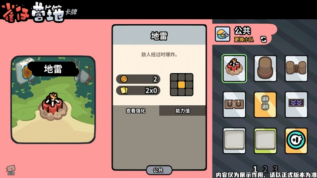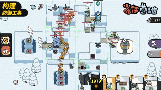 《雀仔营地》是一款卡通风格的卡牌塔防益智游戏。作为博尔德岛的新任指挥官,你需要构建最优的卡牌卡组,把卡牌单位部署在空间有限的战场里,抵挡敌人的进攻,带领可爱的雀仔们赢得胜利。