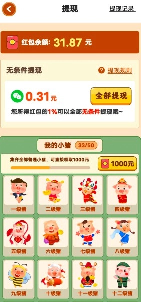 2、养猪能赚钱,这款养猪游戏超有意思,轻松就能赚收益,还支持提现呢!