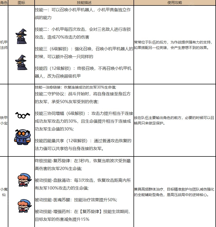 目前来看,红龙是能打能抗的首选,忍者凭借出其不意的特性位居第二。剩下的可能就是小宝了,但感觉小宝的作用不大,毕竟资源有限,能强化好一个角色就不错了,所以小宝也就升到3级,还不如多上几个强化后的角色。