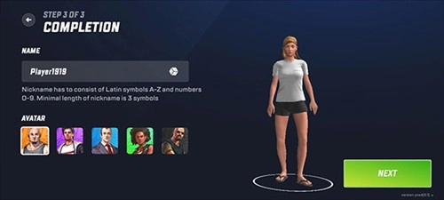 3、为角色挑选一套衣服,可作为初始服装,选定后点击NEXT进入下一步。