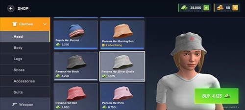 7、点击左侧的Clothes选项,就能购买头饰、衣服、裤子、鞋子以及武器之类的装备。