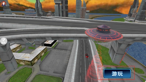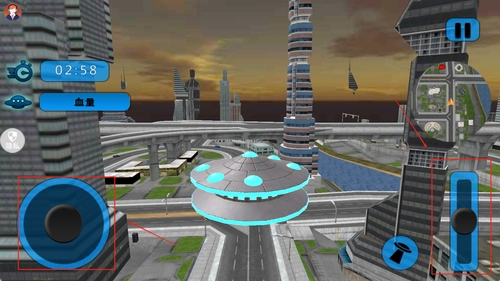 1、进入初始界面,点击“游玩”按钮,加载完成后操控UFO,先熟悉左侧的移动摇杆和右侧的功能按钮,为飞行做好准备。