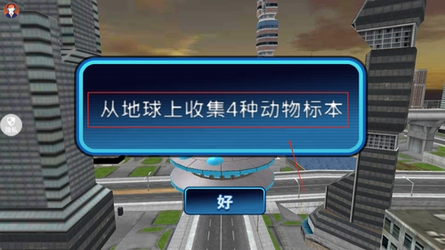 2、在城市场景下,按照地图的指引操控UFO飞行,搜寻动物的分布区域,接近地面上的动物后,启动收集装置。