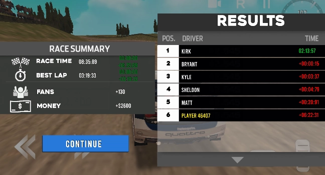 6、生涯模式:以新手身份开启你的拉力征程,一步步攀登至赛车世界的巅峰。完成各项挑战,解锁全新座驾,在每一条赛道上都成为无可匹敌的王者。