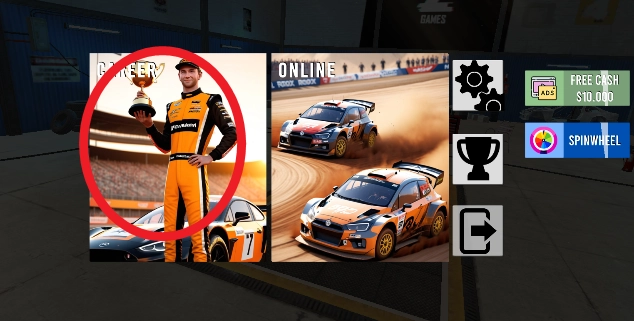 首先进入本站的“拉力之星”板块,点击进入后能看到生涯模式、多人模式和竞技模式,选择其中的career模式并点击进入。