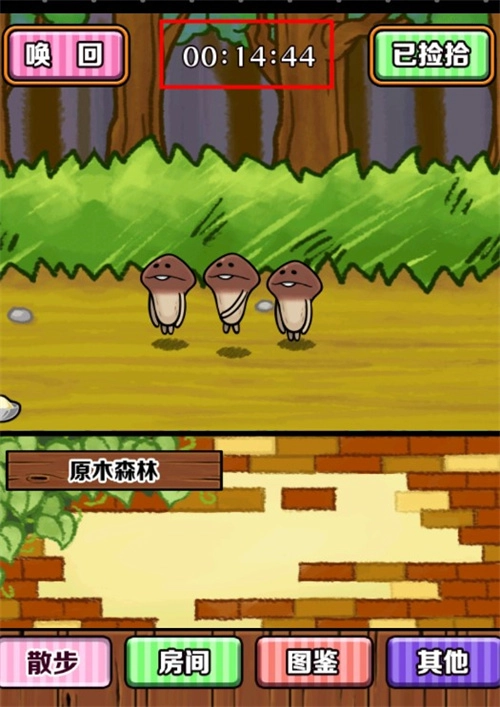 3、菇菇们开始散步后,界面上方会显示散步的剩余时间。